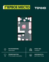 Жилой район "Первое место"- один из самых масштабных проектов в России. На территории 71 га 18 кварталов, 31 дом переменной этажности от 8 до 18 этажей, собственный парк 9 га, храмовый комплекс, пешеходный бульвар "Круг семьи", детские и спортивные площадки, мангальные зоны и различные локации для отдыха. В шаговой доступности действующие муниципальные образовательные учреждения: школа на 1 100 мест и детский сад на 250 мест. Помимо этого, в жилом районе "Первое место" построятся школа на 1700 мест с крытым 25-метровым бассейном и 5 детских садов на 1 490 мест. На первых этажах многоуровневых парковок "паркхабов" разместится более 61 тыс м2 коммерческих помещений. Жителям будут доступны собственный фитнес-центр, кафе, рестораны и магазины. В каждом подъезде предусмотрены дизайнерские холлы в стиле лобби отелей, консьерж-сервис, лапомойки, отдельные колясочные и велосипедные. Также в домах будут просторные кладовые помещения и комнаты для хранения почты с почтоматами для получения посылок из маркетплейсов.