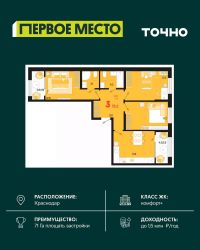 Жилой район "Первое место"- один из самых масштабных проектов в России. На территории 71 га 18 кварталов, 31 дом переменной этажности от 8 до 18 этажей, собственный парк 9 га, храмовый комплекс, пешеходный бульвар "Круг семьи", детские и спортивные площадки, мангальные зоны и различные локации для отдыха. В шаговой доступности действующие муниципальные образовательные учреждения: школа на 1 100 мест и детский сад на 250 мест. Помимо этого, в жилом районе "Первое место" построятся школа на 1700 мест с крытым 25-метровым бассейном и 5 детских садов на 1 490 мест. На первых этажах многоуровневых парковок "паркхабов" разместится более 61 тыс м2 коммерческих помещений. Жителям будут доступны собственный фитнес-центр, кафе, рестораны и магазины. В каждом подъезде предусмотрены дизайнерские холлы в стиле лобби отелей, консьерж-сервис, лапомойки, отдельные колясочные и велосипедные. Также в домах будут просторные кладовые помещения и комнаты для хранения почты с почтоматами для получения посылок из маркетплейсов.