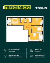 Жилой район "Первое место"- один из самых масштабных проектов в России. На территории 71 га 18 кварталов, 31 дом переменной этажности от 8 до 18 этажей, собственный парк 9 га, храмовый комплекс, пешеходный бульвар "Круг семьи", детские и спортивные площадки, мангальные зоны и различные локации для отдыха. В шаговой доступности действующие муниципальные образовательные учреждения: школа на 1 100 мест и детский сад на 250 мест. Помимо этого, в жилом районе "Первое место" построятся школа на 1700 мест с крытым 25-метровым бассейном и 5 детских садов на 1 490 мест. На первых этажах многоуровневых парковок "паркхабов" разместится более 61 тыс м2 коммерческих помещений. Жителям будут доступны собственный фитнес-центр, кафе, рестораны и магазины. В каждом подъезде предусмотрены дизайнерские холлы в стиле лобби отелей, консьерж-сервис, лапомойки, отдельные колясочные и велосипедные. Также в домах будут просторные кладовые помещения и комнаты для хранения почты с почтоматами для получения посылок из маркетплейсов.
