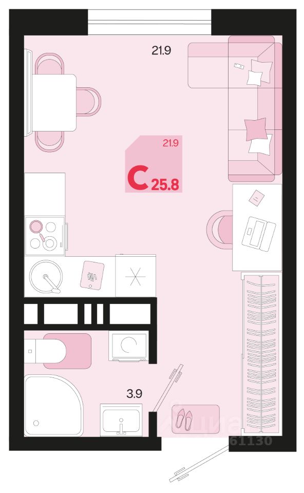 Общая площадь25,8 м²