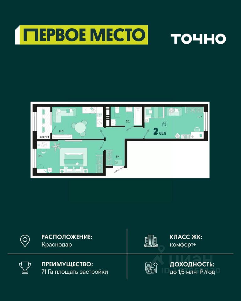 Общая площадь65,8 м²