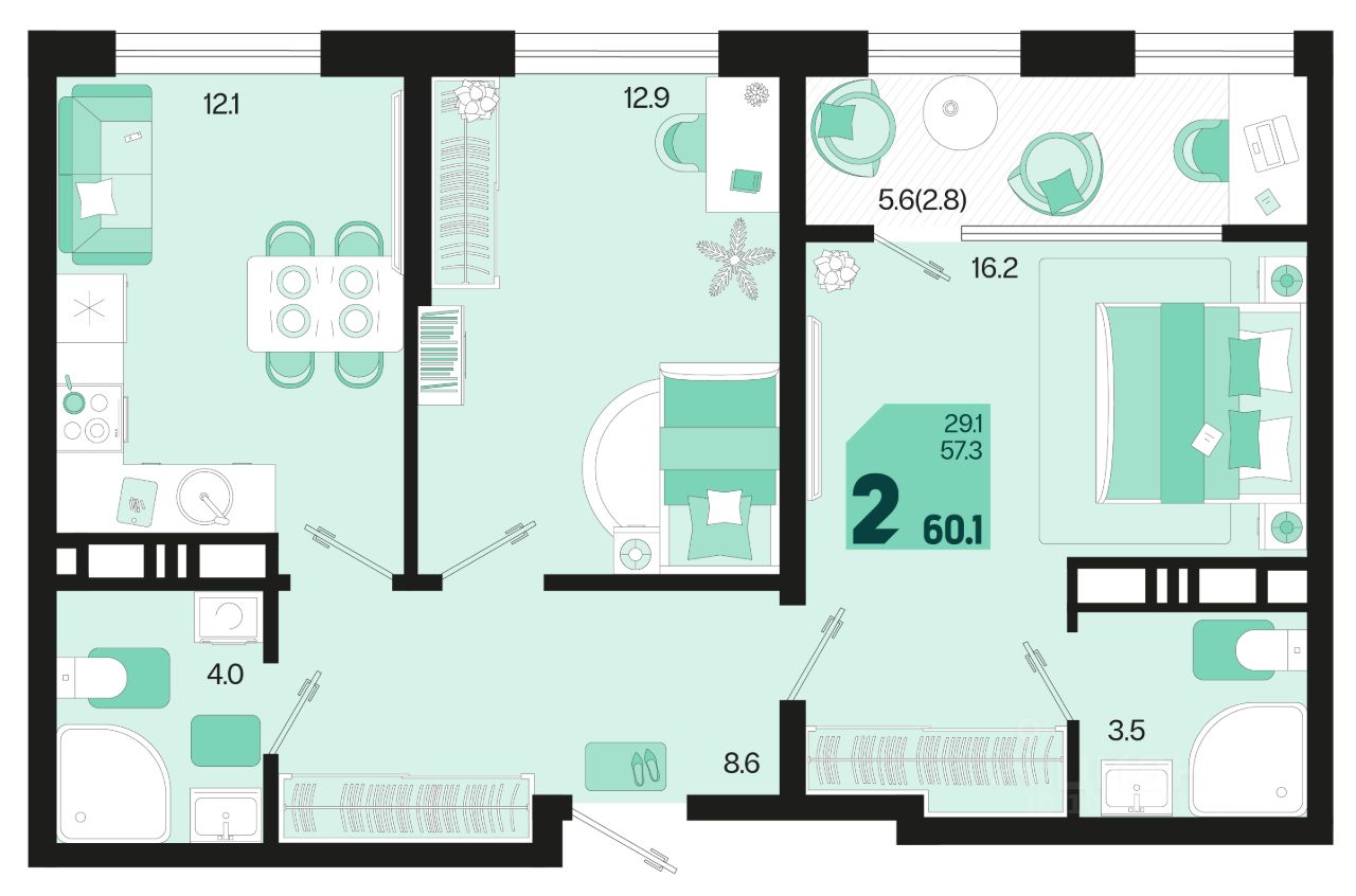 Общая площадь60,1 м²