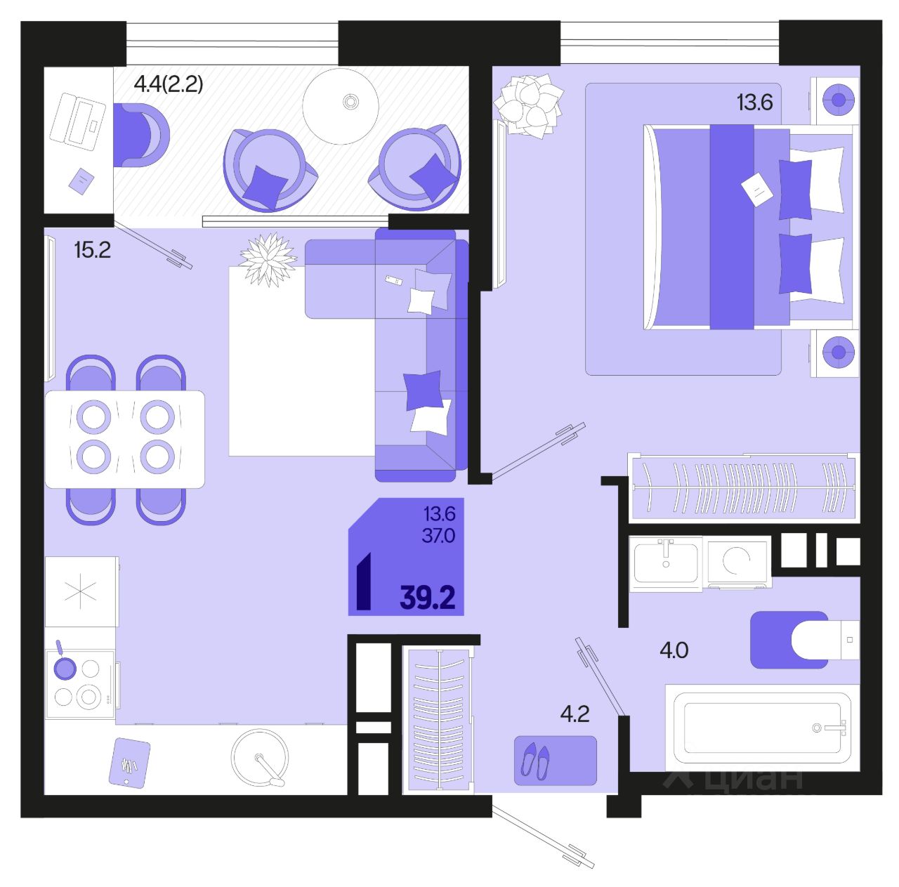 Общая площадь39,2 м²