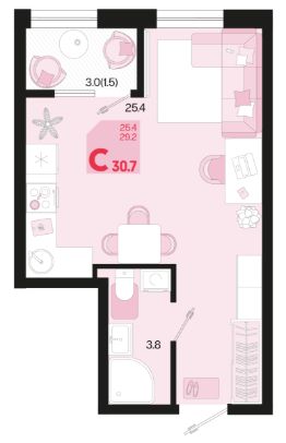 Общая площадь30,7 м²