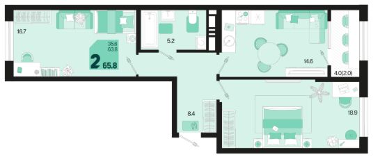 Общая площадь65,8 м²