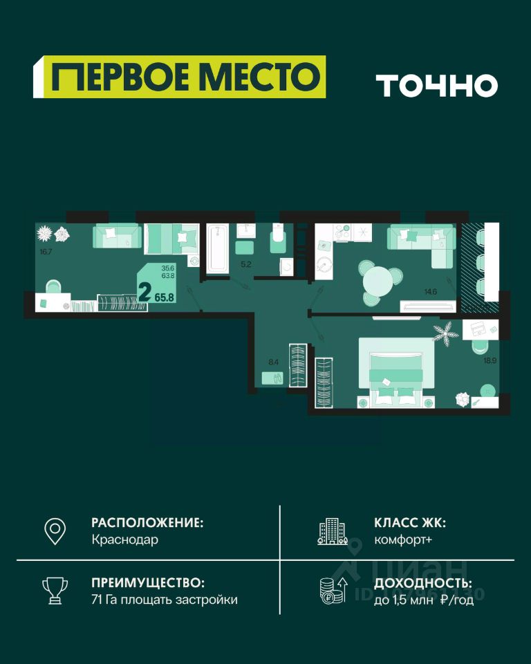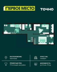 Жилой район "Первое место"- один из самых масштабных проектов в России. На территории 71 га 18 кварталов, 31 дом переменной этажности от 8 до 18 этажей, собственный парк 9 га, храмовый комплекс, пешеходный бульвар "Круг семьи", детские и спортивные площадки, мангальные зоны и различные локации для отдыха. В шаговой доступности действующие муниципальные образовательные учреждения: школа на 1 100 мест и детский сад на 250 мест. Помимо этого, в жилом районе "Первое место" построятся школа на 1700 мест с крытым 25-метровым бассейном и 5 детских садов на 1 490 мест. На первых этажах многоуровневых парковок "паркхабов" разместится более 61 тыс м2 коммерческих помещений. Жителям будут доступны собственный фитнес-центр, кафе, рестораны и магазины. В каждом подъезде предусмотрены дизайнерские холлы в стиле лобби отелей, консьерж-сервис, лапомойки, отдельные колясочные и велосипедные. Также в домах будут просторные кладовые помещения и комнаты для хранения почты с почтоматами для получения посылок из маркетплейсов.
