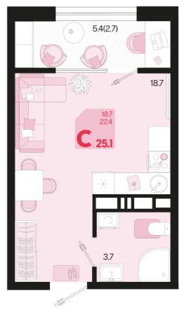 Жилая площадь18,7 м²