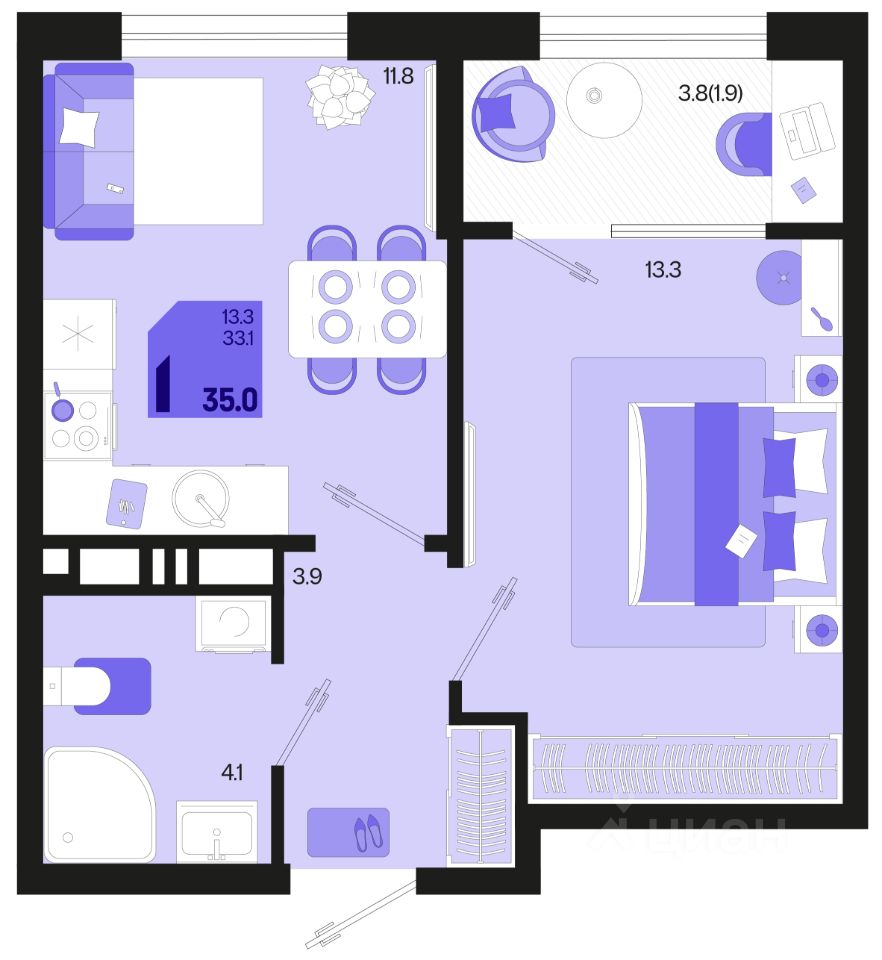 Общая площадь35 м²