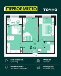 Жилой район "Первое место"- один из самых масштабных проектов в России. На территории 71 га 18 кварталов, 31 дом переменной этажности от 8 до 18 этажей, собственный парк 9 га, храмовый комплекс, пешеходный бульвар "Круг семьи", детские и спортивные площадки, мангальные зоны и различные локации для отдыха. В шаговой доступности действующие муниципальные образовательные учреждения: школа на 1 100 мест и детский сад на 250 мест. Помимо этого, в жилом районе "Первое место" построятся школа на 1700 мест с крытым 25-метровым бассейном и 5 детских садов на 1 490 мест. На первых этажах многоуровневых парковок "паркхабов" разместится более 61 тыс м2 коммерческих помещений. Жителям будут доступны собственный фитнес-центр, кафе, рестораны и магазины. В каждом подъезде предусмотрены дизайнерские холлы в стиле лобби отелей, консьерж-сервис, лапомойки, отдельные колясочные и велосипедные. Также в домах будут просторные кладовые помещения и комнаты для хранения почты с почтоматами для получения посылок из маркетплейсов.