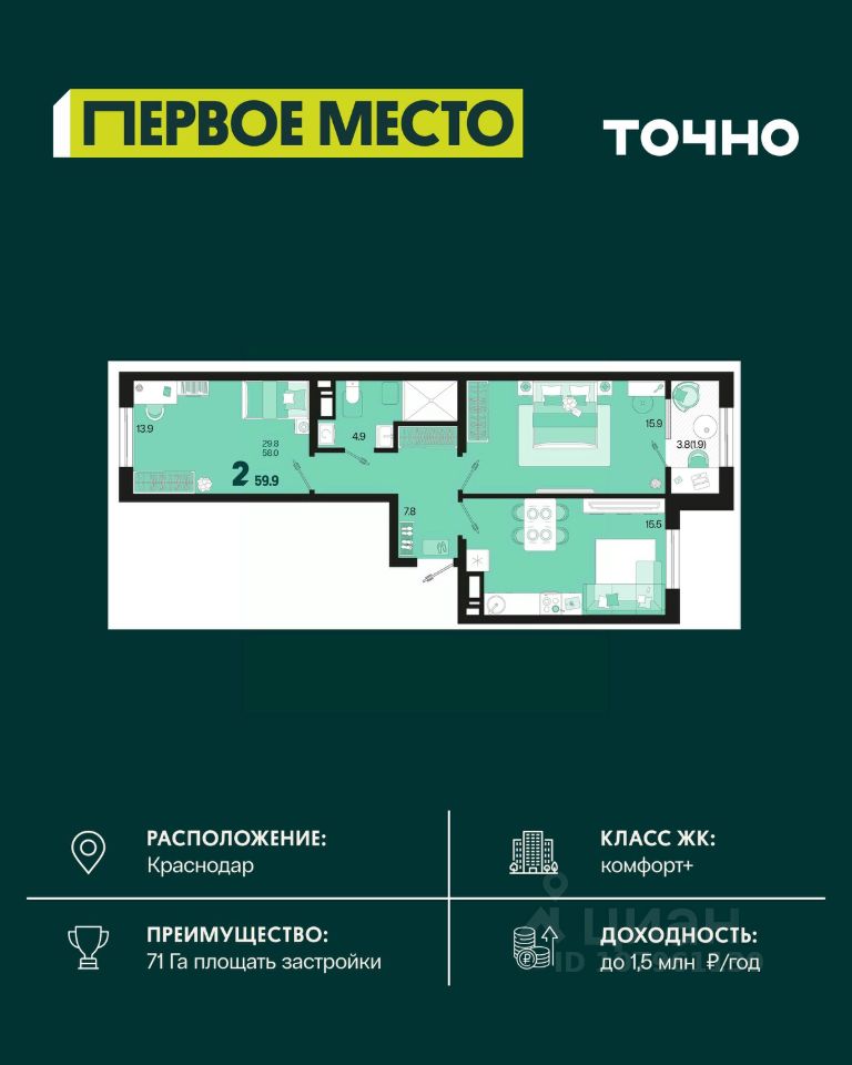 Общая площадь59,9 м²