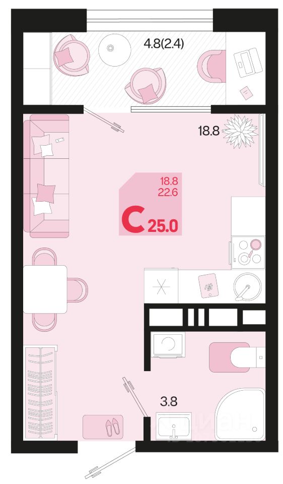 Общая площадь25 м²