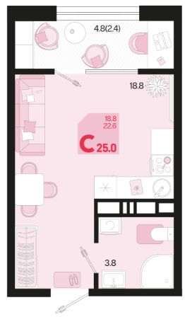 Жилая площадь18,8 м²