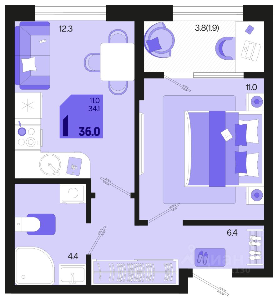 Общая площадь36 м²