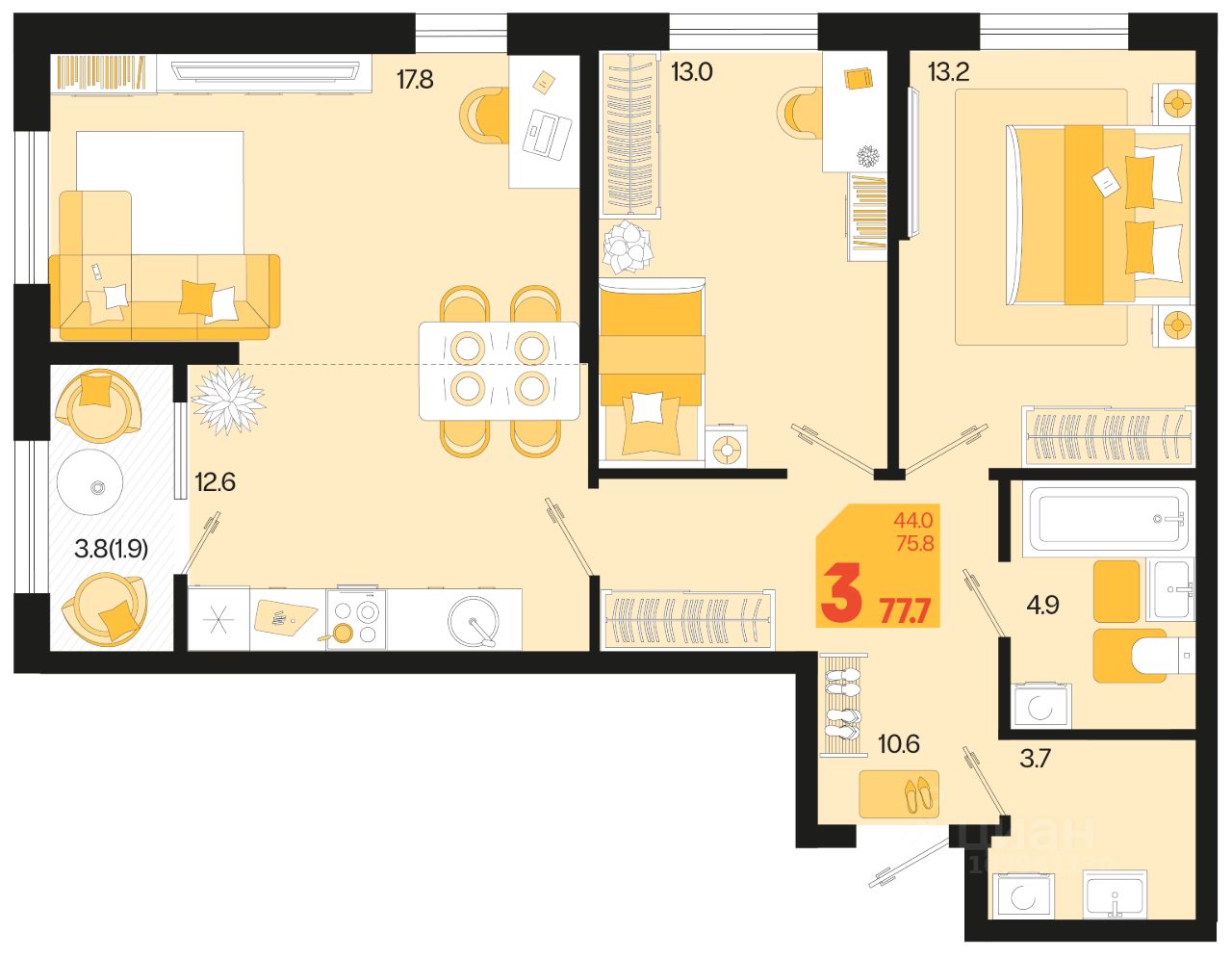 Жилой район "Первое место" — один из самых масштабных проектов в России площадью 71 га расположен в восточной части Краснодара. Комплекс включет 18 кварталов, состоящих из 31 дома переменной этажности от 8 до 18 этажей, собственный парк 9_x000D_ га, храмовый комплекс, пешеходный бульвар "Круг семьи", детские и спортивные площадки, мангальные зоны и различные локации для отдыха. В шаговой доступности действующие муниципальные образовательные учреждения: школа на 1 100 мест_x000D_ и детский сад на 250 мест. Помимо этого, в жилом районе "Первое место" появится еще одна соврменная школа на 1700 мест с крытым 25-метровым бассейном и 5 детских садов на 1 490 мест._x000D_ _x000D_ На первых этажах многоуровневых парковок "паркхабов" разместится более 61 тыс м2 коммерческих помещений. Жителям будут доступны собственный фитнес-центр, кафе, рестораны, магазины и сервисные услуги._x000D_ _x000D_ В каждом подъезде предусмотрены дизайнерские холлы в стиле лобби отелей, консьерж-сервис, лапомойки, отдельные колясочные и велосипедные. Также в домах будут просторные кладовые помещения и комнаты для хранения почты с почтоматами для получения посылок из маркетплейсов. "Первое место" — проект для жизни или инвестиций с доходом до 1,5 млн. руб. в год.*