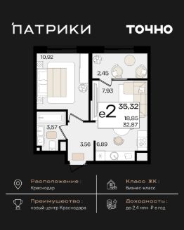 Жилой район бизнес-класса "Патрики" находится в новом центре Краснодара. Это комплекс из 10 домов переменной этажности, гармонично расположенных на территории 28,5 га. Концепция "город в городе" превращает "Патрики" в место, из которого не нужно уезжать, потому что здесь есть все для комфортной жизни и отдыха: просторные прогулочные аллеи и зеленая парковая зона, 3 детских сада и 2 школы, включая частную, гранд-аллея с ресторанами, бутиками, фонтанами и атмосферой европейских столиц, уникальные арт объекты и ландшафтный дизайн, создающие неповторимый облик района Креативный кластер "Цех" — сердце деловой и культурной жизни "Патриков": коворкинг, фудкорт, авторские магазины, детский комплекс, лектории, фитнес-клуб "Баланс" с волной для сёрфа, — здесь рождаются идеи, бизнесы и яркие события. На территории сохранены две башни легендарного завода "Сельмаш" — теперь это арт-объекты Мастер и Маргарита, ставшие символом соединения прошлого и будущего. Микрорайон "Патрики" — это проект не только для жизни и отдыха, но и для выгодных вложений. Выбирайте "Патрики" и получайте доход от инвестиций до 2,4 млн рублей в год.*