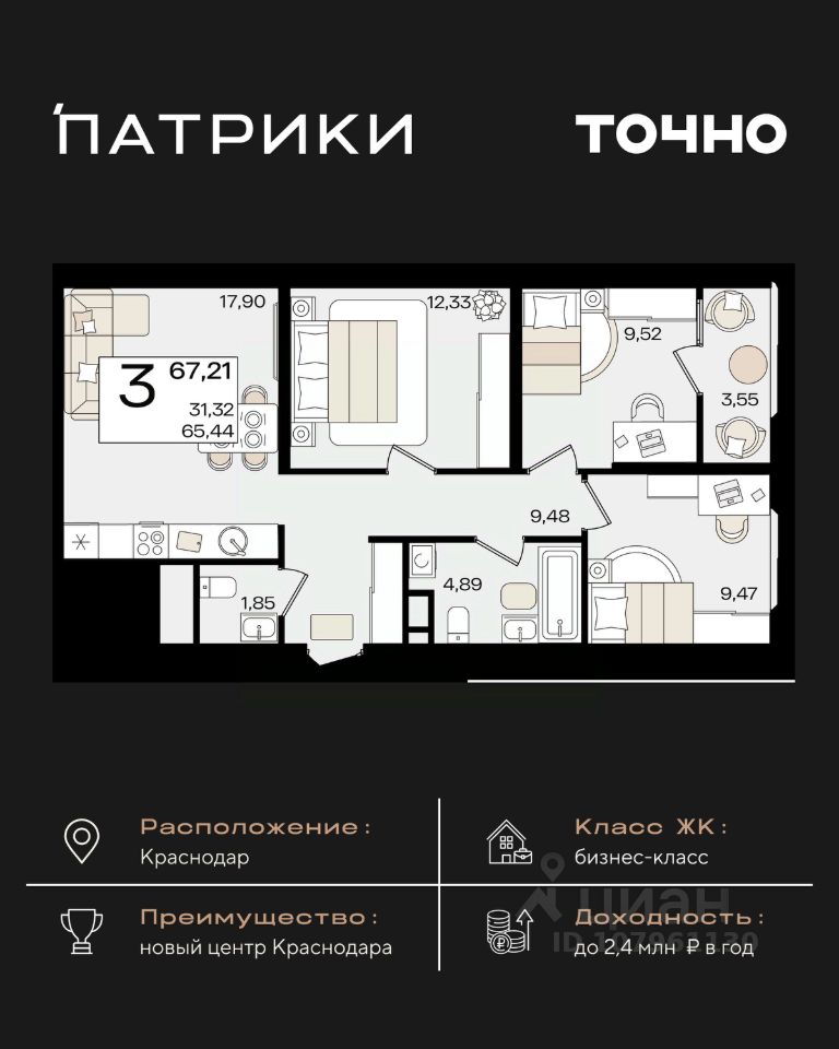 Флагманский проект группы компаний Точно - жилой комплекс бизнес-класса Патрики, это 10 домов разной этажности расположившихся на 28,5 гектарах. Жилой комплекс с концепцией город в город - прогулочные аллеи, парковая территория, 3 детских сада, 2 школы - одна из которых частная, Гранд аллея с ресторанами, фонтанами и модными бутиками, уникальные мафы и ландшафтный дизайн, создают особую атмосферу - место в котором хочется находиться. В Патриках предусмотрен и креативный кластер Цех, который включает в себя пространство для коворкинга, фудкорт, бутики, детский комплекс, лектории, фитнес-клуб Баланс с волной для сёрфа. Но и это еще не все ГК Точно уважает историю, поэтому мы сохранили 2 башни - наследство от завода "Сельмаш" исторический арт-объект назвали Мастер и Маргарита.