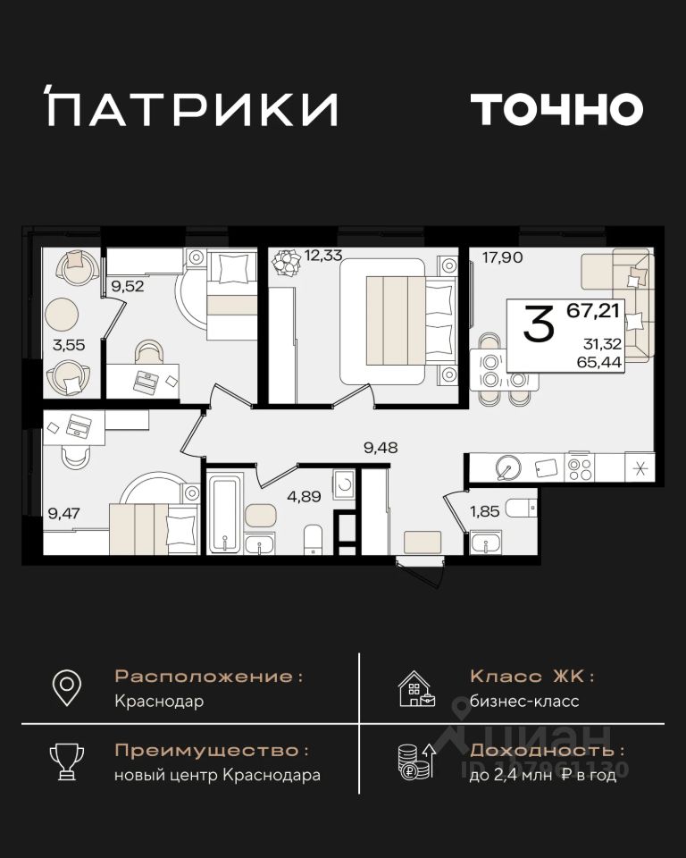 Флагманский проект группы компаний Точно - жилой комплекс бизнес-класса Патрики, это 10 домов разной этажности расположившихся на 28,5 гектарах. Жилой комплекс с концепцией город в город - прогулочные аллеи, парковая территория, 3 детских сада, 2 школы - одна из которых частная, Гранд аллея с ресторанами, фонтанами и модными бутиками, уникальные мафы и ландшафтный дизайн, создают особую атмосферу - место в котором хочется находиться. В Патриках предусмотрен и креативный кластер Цех, который включает в себя пространство для коворкинга, фудкорт, бутики, детский комплекс, лектории, фитнес-клуб Баланс с волной для сёрфа. Но и это еще не все ГК Точно уважает историю, поэтому мы сохранили 2 башни - наследство от завода "Сельмаш" исторический арт-объект назвали Мастер и Маргарита.