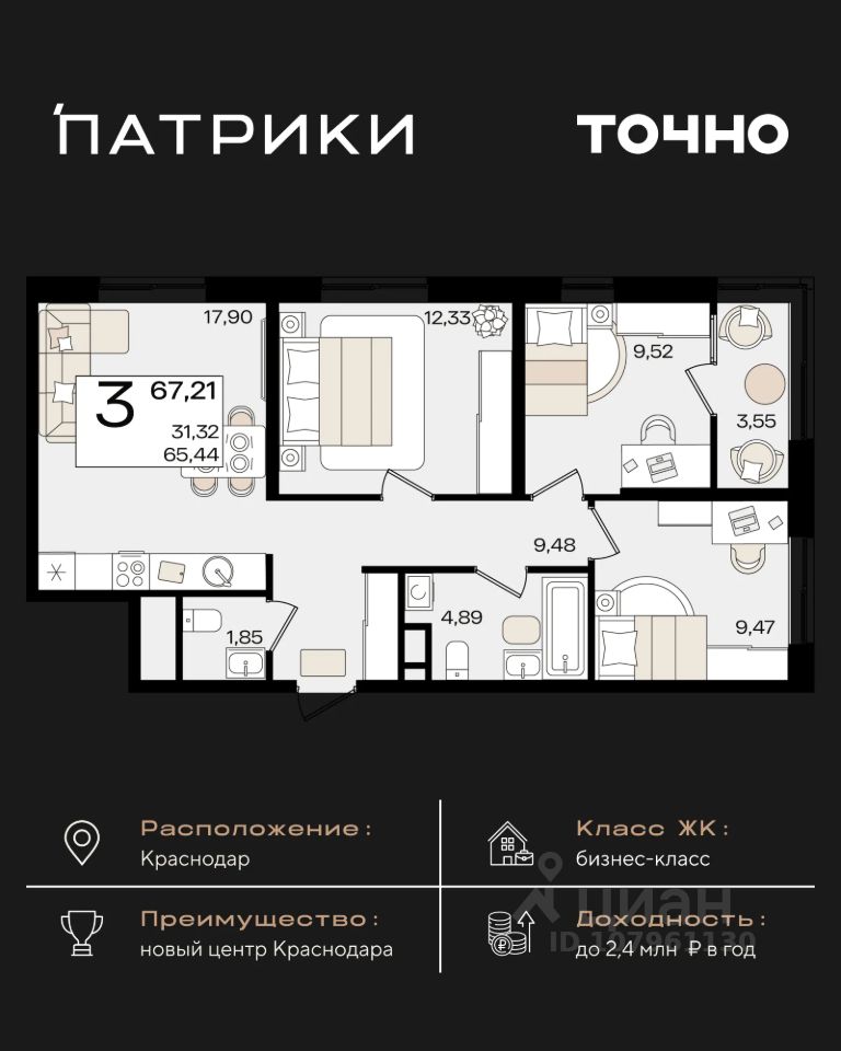 Флагманский проект группы компаний Точно - жилой комплекс бизнес-класса Патрики, это 10 домов разной этажности расположившихся на 28,5 гектарах. Жилой комплекс с концепцией город в город - прогулочные аллеи, парковая территория, 3 детских сада, 2 школы - одна из которых частная, Гранд аллея с ресторанами, фонтанами и модными бутиками, уникальные мафы и ландшафтный дизайн, создают особую атмосферу - место в котором хочется находиться. В Патриках предусмотрен и креативный кластер Цех, который включает в себя пространство для коворкинга, фудкорт, бутики, детский комплекс, лектории, фитнес-клуб Баланс с волной для сёрфа. Но и это еще не все ГК Точно уважает историю, поэтому мы сохранили 2 башни - наследство от завода "Сельмаш" исторический арт-объект назвали Мастер и Маргарита.