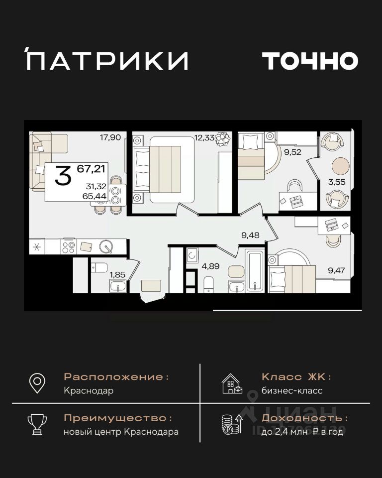 Общая площадь67,21 м²