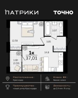 Флагманский проект группы компаний Точно - жилой комплекс бизнес-класса Патрики, это 10 домов разной этажности расположившихся на 28,5 гектарах. Жилой комплекс с концепцией город в город - прогулочные аллеи, парковая территория, 3 детских сада, 2 школы - одна из которых частная, Гранд аллея с ресторанами, фонтанами и модными бутиками, уникальные мафы и ландшафтный дизайн, создают особую атмосферу - место в котором хочется находиться. В Патриках предусмотрен и креативный кластер Цех, который включает в себя пространство для коворкинга, фудкорт, бутики, детский комплекс, лектории, фитнес-клуб Баланс с волной для сёрфа. Но и это еще не все ГК Точно уважает историю, поэтому мы сохранили 2 башни - наследство от завода "Сельмаш" исторический арт-объект назвали Мастер и Маргарита.