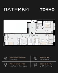 Общая площадь57,3 м²