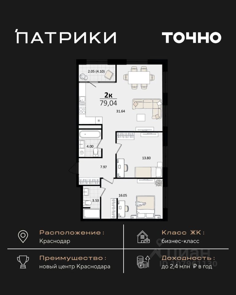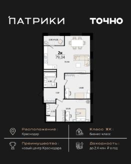 Флагманский проект группы компаний Точно - жилой комплекс бизнес-класса Патрики, это 10 домов разной этажности расположившихся на 28,5 гектарах. Жилой комплекс с концепцией город в город - прогулочные аллеи, парковая территория, 3 детских сада, 2 школы - одна из которых частная, Гранд аллея с ресторанами, фонтанами и модными бутиками, уникальные мафы и ландшафтный дизайн, создают особую атмосферу - место в котором хочется находиться. В Патриках предусмотрен и креативный кластер Цех, который включает в себя пространство для коворкинга, фудкорт, бутики, детский комплекс, лектории, фитнес-клуб Баланс с волной для сёрфа. Но и это еще не все ГК Точно уважает историю, поэтому мы сохранили 2 башни - наследство от завода "Сельмаш" исторический арт-объект назвали Мастер и Маргарита.
