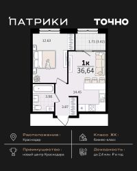 Общая площадь36,64 м²