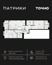 Флагманский проект группы компаний Точно - жилой комплекс бизнес-класса Патрики, это 10 домов разной этажности расположившихся на 28,5 гектарах. Жилой комплекс с концепцией город в город - прогулочные аллеи, парковая территория, 3 детских сада, 2 школы - одна из которых частная, Гранд аллея с ресторанами, фонтанами и модными бутиками, уникальные мафы и ландшафтный дизайн, создают особую атмосферу - место в котором хочется находиться. В Патриках предусмотрен и креативный кластер Цех, который включает в себя пространство для коворкинга, фудкорт, бутики, детский комплекс, лектории, фитнес-клуб Баланс с волной для сёрфа. Но и это еще не все ГК Точно уважает историю, поэтому мы сохранили 2 башни - наследство от завода "Сельмаш" исторический арт-объект назвали Мастер и Маргарита.