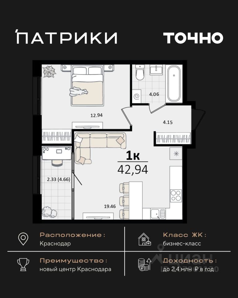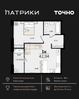 Флагманский проект группы компаний Точно - жилой комплекс бизнес-класса Патрики, это 10 домов разной этажности расположившихся на 28,5 гектарах. Жилой комплекс с концепцией город в город - прогулочные аллеи, парковая территория, 3 детских сада, 2 школы - одна из которых частная, Гранд аллея с ресторанами, фонтанами и модными бутиками, уникальные мафы и ландшафтный дизайн, создают особую атмосферу - место в котором хочется находиться. В Патриках предусмотрен и креативный кластер Цех, который включает в себя пространство для коворкинга, фудкорт, бутики, детский комплекс, лектории, фитнес-клуб Баланс с волной для сёрфа. Но и это еще не все ГК Точно уважает историю, поэтому мы сохранили 2 башни - наследство от завода "Сельмаш" исторический арт-объект назвали Мастер и Маргарита.