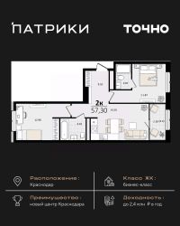 Флагманский проект группы компаний Точно - жилой комплекс бизнес-класса Патрики, это 10 домов разной этажности расположившихся на 28,5 гектарах. Жилой комплекс с концепцией город в город - прогулочные аллеи, парковая территория, 3 детских сада, 2 школы - одна из которых частная, Гранд аллея с ресторанами, фонтанами и модными бутиками, уникальные мафы и ландшафтный дизайн, создают особую атмосферу - место в котором хочется находиться. В Патриках предусмотрен и креативный кластер Цех, который включает в себя пространство для коворкинга, фудкорт, бутики, детский комплекс, лектории, фитнес-клуб Баланс с волной для сёрфа. Но и это еще не все ГК Точно уважает историю, поэтому мы сохранили 2 башни - наследство от завода "Сельмаш" исторический арт-объект назвали Мастер и Маргарита.