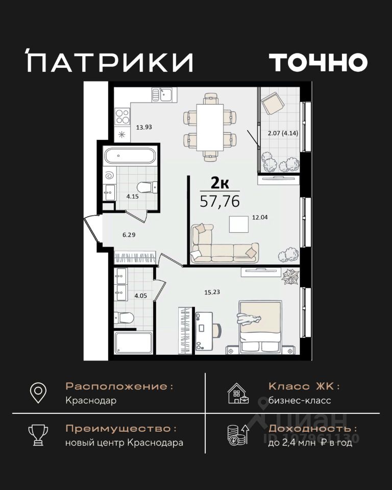 Общая площадь57,76 м²