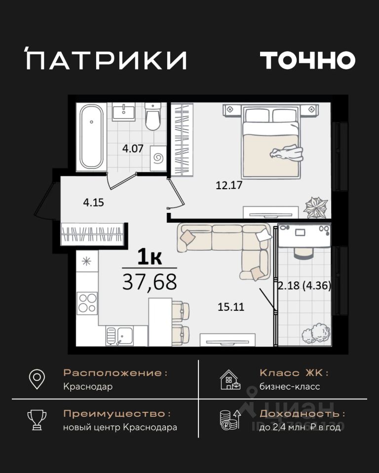 Флагманский проект группы компаний Точно - жилой комплекс бизнес-класса Патрики, это 10 домов разной этажности расположившихся на 28,5 гектарах. Жилой комплекс с концепцией город в город - прогулочные аллеи, парковая территория, 3 детских сада, 2 школы - одна из которых частная, Гранд аллея с ресторанами, фонтанами и модными бутиками, уникальные мафы и ландшафтный дизайн, создают особую атмосферу - место в котором хочется находиться. В Патриках предусмотрен и креативный кластер Цех, который включает в себя пространство для коворкинга, фудкорт, бутики, детский комплекс, лектории, фитнес-клуб Баланс с волной для сёрфа. Но и это еще не все ГК Точно уважает историю, поэтому мы сохранили 2 башни - наследство от завода "Сельмаш" исторический арт-объект назвали Мастер и Маргарита.