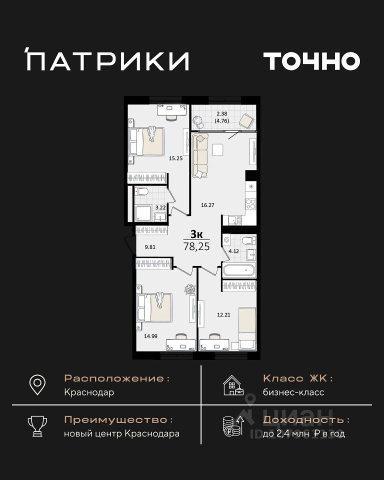 Микрорайон "Патрики" — это проект не только для жизни и отдыха, но и для выгодных вложений. Выбирайте "Патрики" и получайте доход от инвестиций до 2,4 млн рублей в год.*