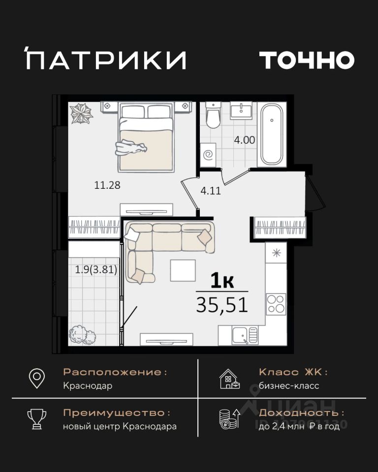 Жилой район бизнес-класса "Патрики" находится в новом центре Краснодара. Это комплекс из 10 домов переменной этажности, гармонично расположенных на территории 28,5 га. Концепция "город в городе" превращает "Патрики" в место, из которого не нужно уезжать, потому что здесь есть все для комфортной жизни и отдыха: просторные прогулочные аллеи и зеленая парковая зона, 3 детских сада и 2 школы, включая частную, гранд-аллея с ресторанами, бутиками, фонтанами и атмосферой европейских столиц, уникальные арт объекты и ландшафтный дизайн, создающие неповторимый облик района Креативный кластер "Цех" — сердце деловой и культурной жизни "Патриков": коворкинг, фудкорт, авторские магазины, детский комплекс, лектории, фитнес-клуб "Баланс" с волной для сёрфа, — здесь рождаются идеи, бизнесы и яркие события. На территории сохранены две башни легендарного завода "Сельмаш" — теперь это арт-объекты Мастер и Маргарита, ставшие символом соединения прошлого и будущего. Микрорайон "Патрики" — это проект не только для жизни и отдыха, но и для выгодных вложений. Выбирайте "Патрики" и получайте доход от инвестиций до 2,4 млн рублей в год.*