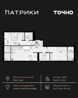 Жилой район бизнес-класса "Патрики" находится в новом центре Краснодара. Это комплекс из 10 домов переменной этажности, гармонично расположенных на территории 28,5 га. Концепция "город в городе" превращает "Патрики" в место, из которого не нужно уезжать, потому что здесь есть все для комфортной жизни и отдыха: просторные прогулочные аллеи и зеленая парковая зона, 3 детских сада и 2 школы, включая частную, гранд-аллея с ресторанами, бутиками, фонтанами и атмосферой европейских столиц, уникальные арт объекты и ландшафтный дизайн, создающие неповторимый облик района Креативный кластер "Цех" — сердце деловой и культурной жизни "Патриков": коворкинг, фудкорт, авторские магазины, детский комплекс, лектории, фитнес-клуб "Баланс" с волной для сёрфа, — здесь рождаются идеи, бизнесы и яркие события. На территории сохранены две башни легендарного завода "Сельмаш" — теперь это арт-объекты Мастер и Маргарита, ставшие символом соединения прошлого и будущего. Микрорайон "Патрики" — это проект не только для жизни и отдыха, но и для выгодных вложений. Выбирайте "Патрики" и получайте доход от инвестиций до 2,4 млн рублей в год.*