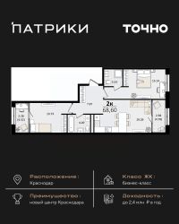 Флагманский проект группы компаний Точно - жилой комплекс бизнес-класса Патрики, это 10 домов разной этажности расположившихся на 28,5 гектарах. Жилой комплекс с концепцией город в город - прогулочные аллеи, парковая территория, 3 детских сада, 2 школы - одна из которых частная, Гранд аллея с ресторанами, фонтанами и модными бутиками, уникальные мафы и ландшафтный дизайн, создают особую атмосферу - место в котором хочется находиться. В Патриках предусмотрен и креативный кластер Цех, который включает в себя пространство для коворкинга, фудкорт, бутики, детский комплекс, лектории, фитнес-клуб Баланс с волной для сёрфа. Но и это еще не все ГК Точно уважает историю, поэтому мы сохранили 2 башни - наследство от завода "Сельмаш" исторический арт-объект назвали Мастер и Маргарита.