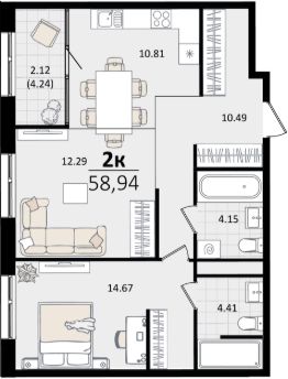 Общая площадь58,94 м²
