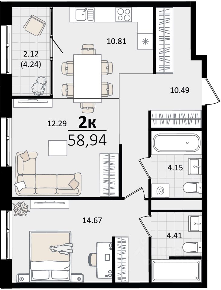 Общая площадь58,94 м²