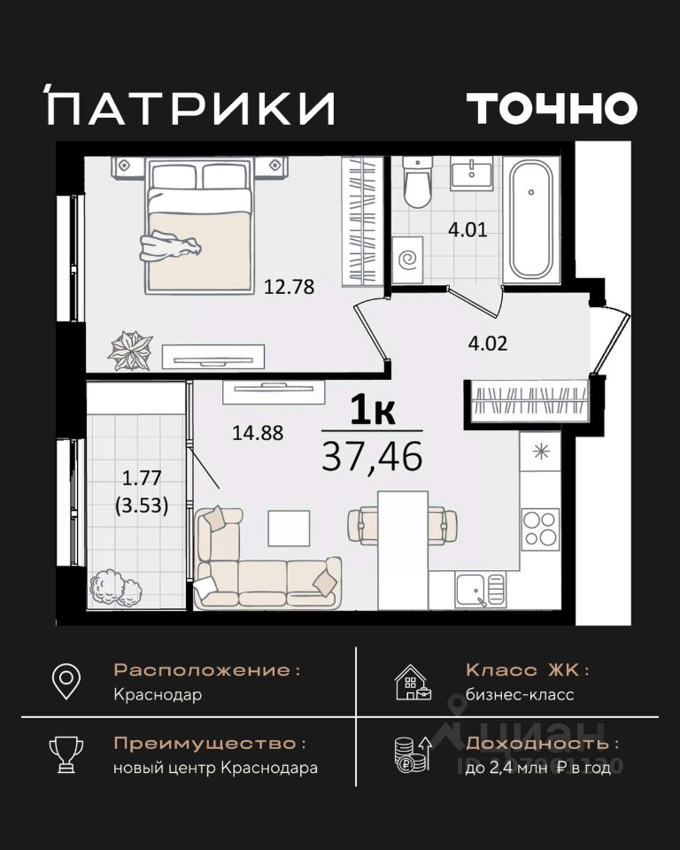 Флагманский проект группы компаний Точно - жилой комплекс бизнес-класса Патрики, это 10 домов разной этажности расположившихся на 28,5 гектарах. Жилой комплекс с концепцией город в город - прогулочные аллеи, парковая территория, 3 детских сада, 2 школы - одна из которых частная, Гранд аллея с ресторанами, фонтанами и модными бутиками, уникальные мафы и ландшафтный дизайн, создают особую атмосферу - место в котором хочется находиться. В Патриках предусмотрен и креативный кластер Цех, который включает в себя пространство для коворкинга, фудкорт, бутики, детский комплекс, лектории, фитнес-клуб Баланс с волной для сёрфа. Но и это еще не все ГК Точно уважает историю, поэтому мы сохранили 2 башни - наследство от завода "Сельмаш" исторический арт-объект назвали Мастер и Маргарита.