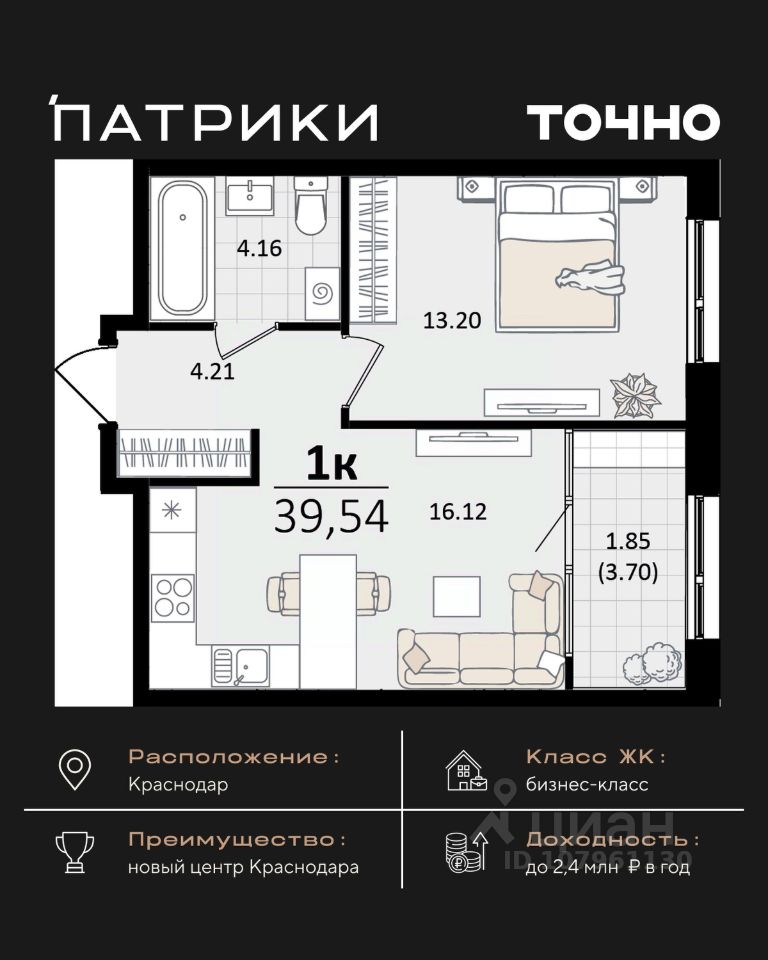Флагманский проект группы компаний Точно - жилой комплекс бизнес-класса Патрики, это 10 домов разной этажности расположившихся на 28,5 гектарах. Жилой комплекс с концепцией город в город - прогулочные аллеи, парковая территория, 3 детских сада, 2 школы - одна из которых частная, Гранд аллея с ресторанами, фонтанами и модными бутиками, уникальные мафы и ландшафтный дизайн, создают особую атмосферу - место в котором хочется находиться. В Патриках предусмотрен и креативный кластер Цех, который включает в себя пространство для коворкинга, фудкорт, бутики, детский комплекс, лектории, фитнес-клуб Баланс с волной для сёрфа. Но и это еще не все ГК Точно уважает историю, поэтому мы сохранили 2 башни - наследство от завода "Сельмаш" исторический арт-объект назвали Мастер и Маргарита.