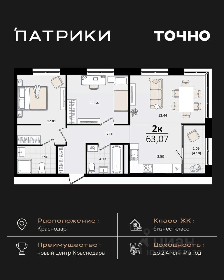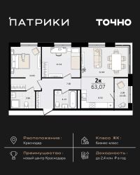 Флагманский проект группы компаний Точно - жилой комплекс бизнес-класса Патрики, это 10 домов разной этажности расположившихся на 28,5 гектарах. Жилой комплекс с концепцией город в город - прогулочные аллеи, парковая территория, 3 детских сада, 2 школы - одна из которых частная, Гранд аллея с ресторанами, фонтанами и модными бутиками, уникальные мафы и ландшафтный дизайн, создают особую атмосферу - место в котором хочется находиться. В Патриках предусмотрен и креативный кластер Цех, который включает в себя пространство для коворкинга, фудкорт, бутики, детский комплекс, лектории, фитнес-клуб Баланс с волной для сёрфа. Но и это еще не все ГК Точно уважает историю, поэтому мы сохранили 2 башни - наследство от завода "Сельмаш" исторический арт-объект назвали Мастер и Маргарита.