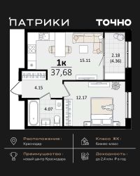 Общая площадь37,68 м²