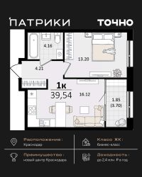 Общая площадь39,54 м²