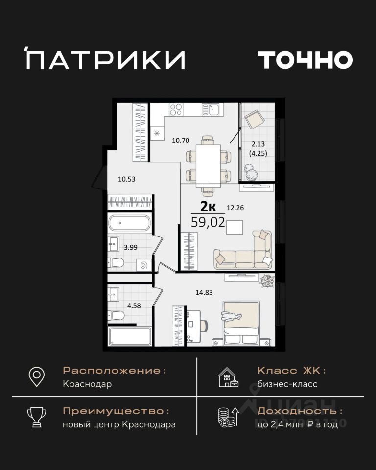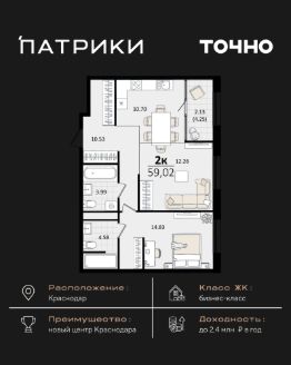 Жилой район бизнес-класса "Патрики" находится в новом центре Краснодара. Это комплекс из 10 домов переменной этажности, гармонично расположенных на территории 28,5 га. Концепция "город в городе" превращает "Патрики" в место, из которого не нужно уезжать, потому что здесь есть все для комфортной жизни и отдыха: просторные прогулочные аллеи и зеленая парковая зона, 3 детских сада и 2 школы, включая частную, гранд-аллея с ресторанами, бутиками, фонтанами и атмосферой европейских столиц, уникальные арт объекты и ландшафтный дизайн, создающие неповторимый облик района Креативный кластер "Цех" — сердце деловой и культурной жизни "Патриков": коворкинг, фудкорт, авторские магазины, детский комплекс, лектории, фитнес-клуб "Баланс" с волной для сёрфа, — здесь рождаются идеи, бизнесы и яркие события. На территории сохранены две башни легендарного завода "Сельмаш" — теперь это арт-объекты Мастер и Маргарита, ставшие символом соединения прошлого и будущего. Микрорайон "Патрики" — это проект не только для жизни и отдыха, но и для выгодных вложений. Выбирайте "Патрики" и получайте доход от инвестиций до 2,4 млн рублей в год.*