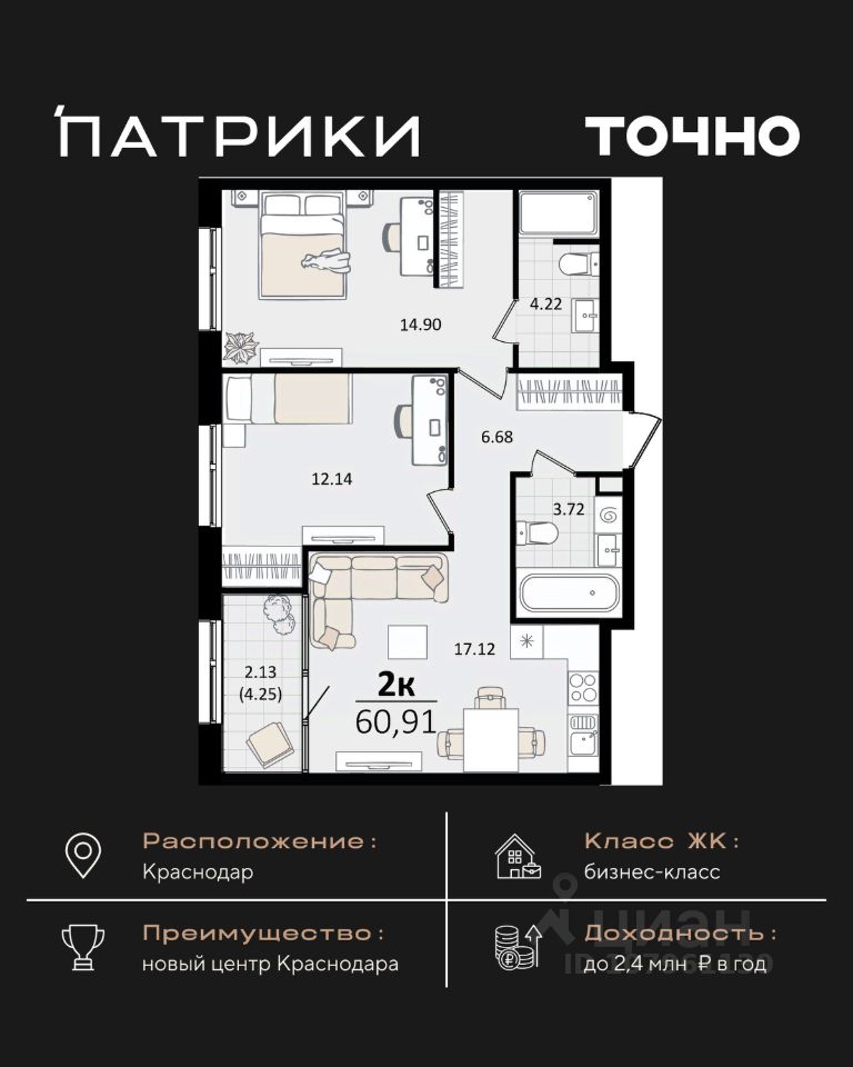 Флагманский проект группы компаний Точно - жилой комплекс бизнес-класса Патрики, это 10 домов разной этажности расположившихся на 28,5 гектарах. Жилой комплекс с концепцией город в город - прогулочные аллеи, парковая территория, 3 детских сада, 2 школы - одна из которых частная, Гранд аллея с ресторанами, фонтанами и модными бутиками, уникальные мафы и ландшафтный дизайн, создают особую атмосферу - место в котором хочется находиться. В Патриках предусмотрен и креативный кластер Цех, который включает в себя пространство для коворкинга, фудкорт, бутики, детский комплекс, лектории, фитнес-клуб Баланс с волной для сёрфа. Но и это еще не все ГК Точно уважает историю, поэтому мы сохранили 2 башни - наследство от завода "Сельмаш" исторический арт-объект назвали Мастер и Маргарита.