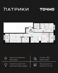 Флагманский проект группы компаний Точно - жилой комплекс бизнес-класса Патрики, это 10 домов разной этажности расположившихся на 28,5 гектарах. Жилой комплекс с концепцией город в город - прогулочные аллеи, парковая территория, 3 детских сада, 2 школы - одна из которых частная, Гранд аллея с ресторанами, фонтанами и модными бутиками, уникальные мафы и ландшафтный дизайн, создают особую атмосферу - место в котором хочется находиться. В Патриках предусмотрен и креативный кластер Цех, который включает в себя пространство для коворкинга, фудкорт, бутики, детский комплекс, лектории, фитнес-клуб Баланс с волной для сёрфа. Но и это еще не все ГК Точно уважает историю, поэтому мы сохранили 2 башни - наследство от завода "Сельмаш" исторический арт-объект назвали Мастер и Маргарита.
