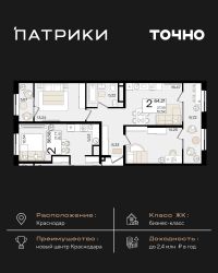 Флагманский проект группы компаний Точно - жилой комплекс бизнес-класса Патрики, это 10 домов разной этажности расположившихся на 28,5 гектарах. Жилой комплекс с концепцией город в город - прогулочные аллеи, парковая территория, 3 детских сада, 2 школы - одна из которых частная, Гранд аллея с ресторанами, фонтанами и модными бутиками, уникальные мафы и ландшафтный дизайн, создают особую атмосферу - место в котором хочется находиться. В Патриках предусмотрен и креативный кластер Цех, который включает в себя пространство для коворкинга, фудкорт, бутики, детский комплекс, лектории, фитнес-клуб Баланс с волной для сёрфа. Но и это еще не все ГК Точно уважает историю, поэтому мы сохранили 2 башни - наследство от завода "Сельмаш" исторический арт-объект назвали Мастер и Маргарита.
