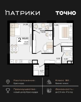 Флагманский проект группы компаний Точно - жилой комплекс бизнес-класса Патрики, это 10 домов разной этажности расположившихся на 28,5 гектарах. Жилой комплекс с концепцией город в город - прогулочные аллеи, парковая территория, 3 детских сада, 2 школы - одна из которых частная, Гранд аллея с ресторанами, фонтанами и модными бутиками, уникальные мафы и ландшафтный дизайн, создают особую атмосферу - место в котором хочется находиться. В Патриках предусмотрен и креативный кластер Цех, который включает в себя пространство для коворкинга, фудкорт, бутики, детский комплекс, лектории, фитнес-клуб Баланс с волной для сёрфа. Но и это еще не все ГК Точно уважает историю, поэтому мы сохранили 2 башни - наследство от завода "Сельмаш" исторический арт-объект назвали Мастер и Маргарита.