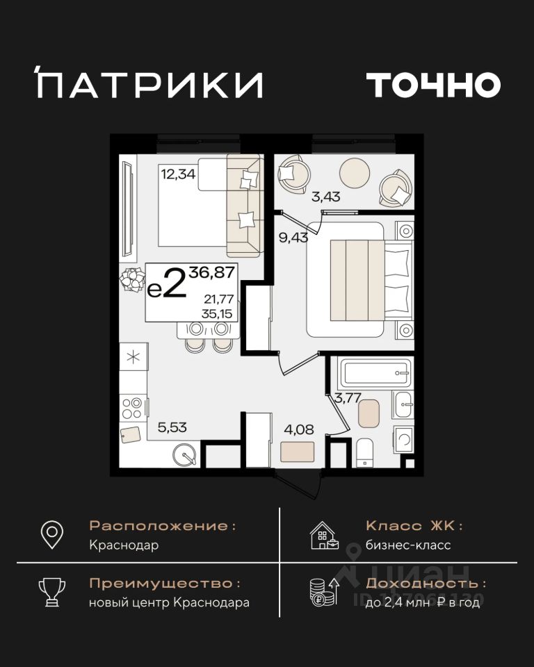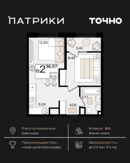 Флагманский проект группы компаний Точно - жилой комплекс бизнес-класса Патрики, это 10 домов разной этажности расположившихся на 28,5 гектарах. Жилой комплекс с концепцией город в город - прогулочные аллеи, парковая территория, 3 детских сада, 2 школы - одна из которых частная, Гранд аллея с ресторанами, фонтанами и модными бутиками, уникальные мафы и ландшафтный дизайн, создают особую атмосферу - место в котором хочется находиться. В Патриках предусмотрен и креативный кластер Цех, который включает в себя пространство для коворкинга, фудкорт, бутики, детский комплекс, лектории, фитнес-клуб Баланс с волной для сёрфа. Но и это еще не все ГК Точно уважает историю, поэтому мы сохранили 2 башни - наследство от завода "Сельмаш" исторический арт-объект назвали Мастер и Маргарита.