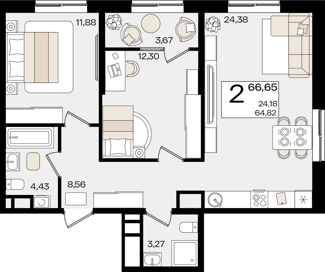 Предчистовая — остаётся установить сантехнику, розетки, двери и навести красоту: поклеить обои и уложить на пол покрытие